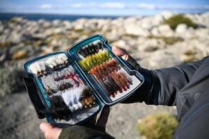 - Flies Large baitfish patterns on strong singles. Black and purple, olive and tan, and natural bait tones cover most light scenarios. Include brush style streamers, big Deceiver profiles, and compact Clousers for clear water or pressured fish.