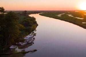 Setté Cama Fishing Camp by African Waters limits weekly rod numbers and runs a rotation that keeps water rested. Guides split time between the lagoon and mouth, and when conditions align you will step onto the beach and cast from the surf line. The camp’s position on the estuary puts anglers minutes from productive banks and bars. Wildlife viewing is part of the experience and the setting feels remote even though travel logistics are streamlined by the operator.